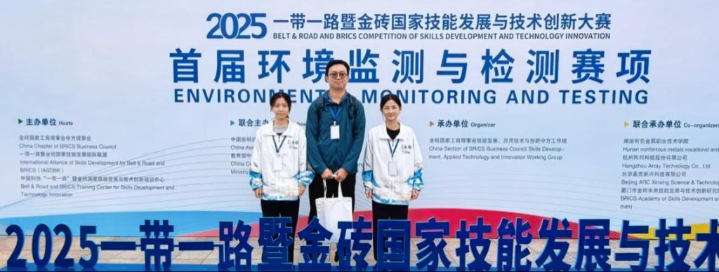 2025年10月19日,首届“一带一路暨金砖国家技能发展与技术创新大赛—环境监测与检测赛项”决赛在湖南有色金属职业技术学院顺利落下帷幕。我校轻化与材料学院参赛选手郭丽冰、谢露同学(指导教师:靳小静、吴鹿鸣)凭借扎实的专业基础、出色的实践能力和默契的团队配合,在来自全国27个省(自治区、直辖市)89所院校的210名高职组选手中表现优异,最终荣获高职组银奖。